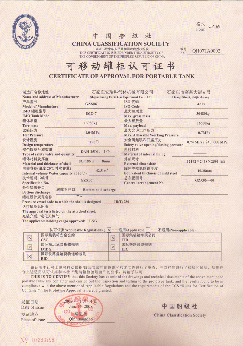 1可移动罐柜认可证书 (CCS颁发的)