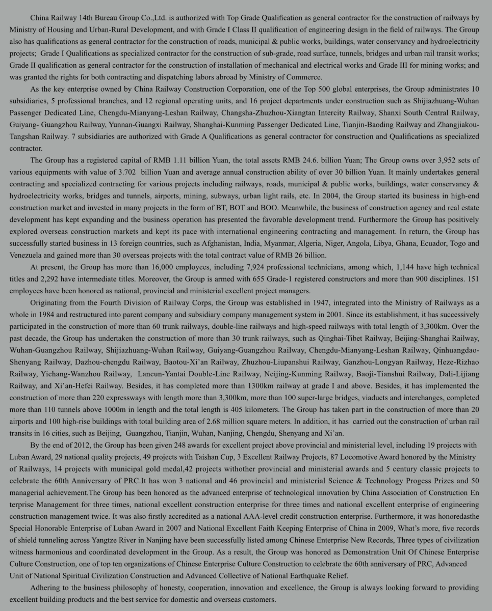 Hainan Yuanzhen andChina Railway 14th Bureau Group Co., Ltd. have established strtegical coopeartion relationship and will work together in invest in, design and construct various large international and domestic engineering projects in the future.